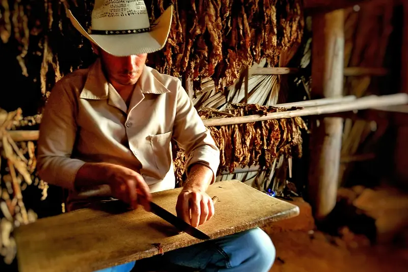 <Fahren Sie zur hügeligen Cueva de los Portales, wo der legendäre Che Guevara lebte und die Westarmee der Kubanischen Revolution ausbildete. Von dort aus radeln Sie weiter in die UNESCO-geschützte Stadt Viñales. Eingebettet in sanfte Berge, erinnert diese wunderschöne, abgelegene Gegend an die Kalkstein-Karstlandschaft Vietnams und ist der perfekte Ort zum Radfahren, da die Straßen kaum befahren sind. Treten Sie ein kurzes Stück bergauf in die Pedale und genießen Sie die spektakuläre Aussicht, bevor Sie die charmante Mama Luisa treffen – eine erfahrene Bäuerin, die Sie mit einem köstlichen lokalen Gericht verwöhnt. Anschließend radeln Sie zu einer Tabakfarm, wo Sie einen anderen Bauern treffen, der Ihnen zeigt, wie Tabak getrocknet und zu Zigarren gerollt wird – hier haben Sie die Möglichkeit, diese kubanische Spezialität direkt vom Hersteller zu erwerben. Steigen Sie wieder ins Begleitfahrzeug und kehren Sie rechtzeitig nach Viñales zurück, um in einem Restaurant am Hang ein kulinarisches Erlebnis der Extraklasse zu genießen. Die Speisen hier sind zu 100 % biologisch und aus lokalem Anbau, und obwohl Getränke nicht inbegriffen sind, zahlen Sie nur für die Mixgetränke, da der Rum kostenlos ist! - Ihre heutige Reisezeit beträgt etwa 1,5 Stunden. Die Radstrecke ist ca. 46 km lang und führt über hügelige Straßen mit einigen steilen Anstiegen und einem Höhenunterschied von ca. 575 m. Die Straßen bestehen zu 90 % aus Asphalt und zu 10 % aus Schotter – größtenteils in gutem Zustand, einige Abschnitte sind jedoch beschädigt und in schlechterem Zustand. -