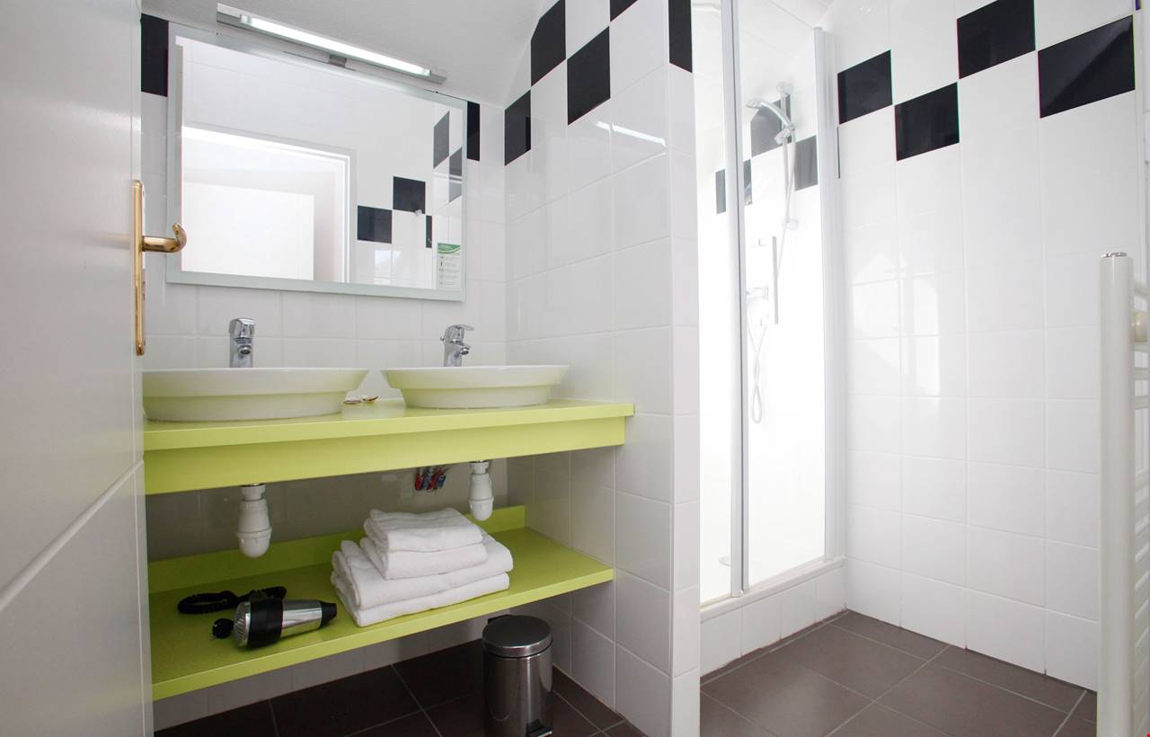 <3-4 Räume 8 Personen (ca. 60 m²), Im Stock, mit Treppe oder Aufzug nach der Lage im Schloss, Wohnzimmer mit ausziehbarem Sofa, 2 Schlafzimmer mit je 1 Doppelbett, 1 Kabine (kleines Schlafzimmer mit Fenster) mit entweder 2 Etagenbetten oder 2 Einzelbetten Ausgestattete Küchenzeile (Ceranfeld 4 Flammen, Mikrowelle / Grill, Geschirrspüler, Kaffeemaschine, Wasserkocher, Toaster, Kühlschrank mit Gefrierfach), Duschraum mit WC oder separates WC. -
