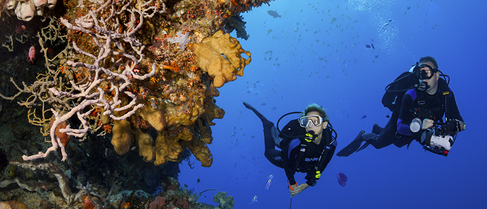 <Resort • 2 × 70-minütige geführte Bootstauchgänge an erstklassigen, geschützten Riffen Pelagian • 2 × 70-minütige geführte Tauchgänge von zweimotorigen Beibooten an erstklassigen, geschützten Riffen Beide beinhalten: • Flaschen, Gewichte & Gewichtsgurt • Snacks, Getränke und Handtücher auf den Booten • Vollständigen Porter-Service für Tauchausrüstung / Kameras • „Dive Valet“-Service für Spülen und Trocknen der Ausrüstung • Nitrox für zertifizierte Nitrox-Taucher:innen • Einen erheblichen Beitrag zu unserem preisgekrönten Naturschutzprogramm € 190 pro Person/Tag