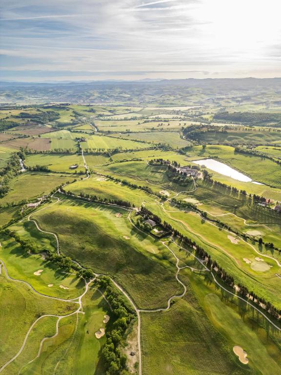 <Der zum Resort gehörende Castiglion del Bosco Golf Club ist einer der wenigen privaten Golfplätze Italiens. Golf-Highlights: 18-Loch Championship Course (Par 72), Entworfen von Tom Weiskopf, Spektakuläre Fairways inmitten der toskanischen Hügel, Perfektes Ganzjahres-Golfklima, Driving Range, Chipping & Putting Greens, PGA-Training & Custom Fittings, Ein außergewöhnlicher Platz – besonders beliebt bei Golfern aus Deutschland und ganz Europa. -