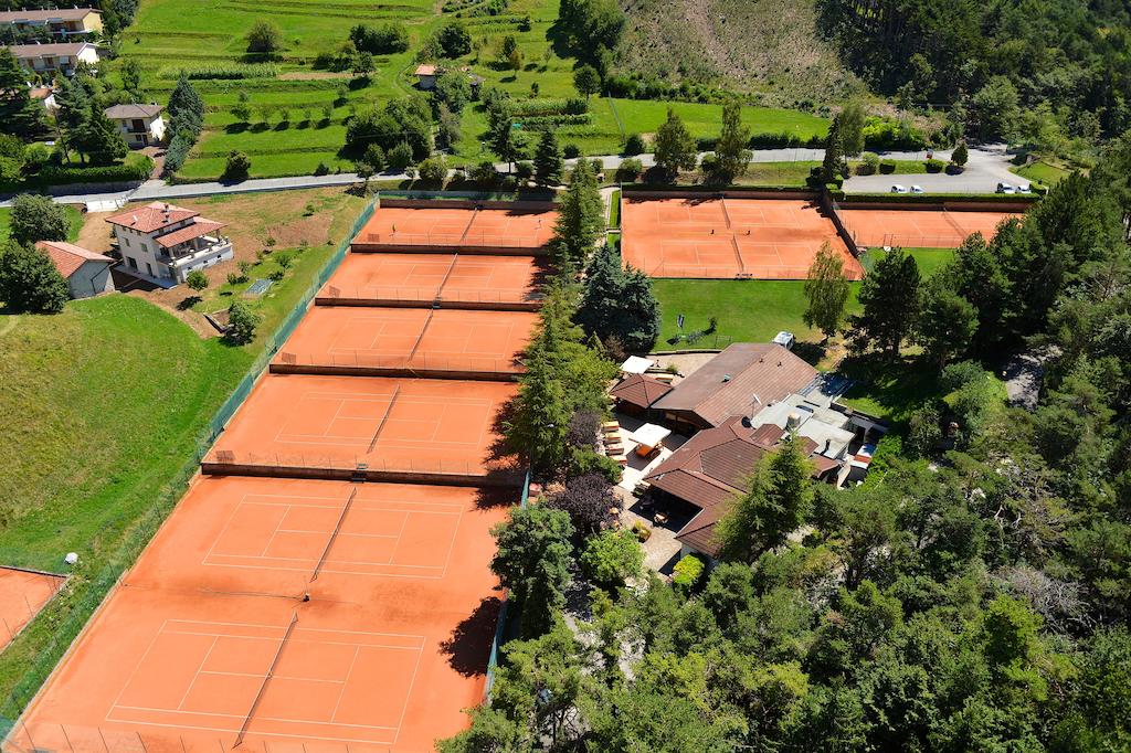 <hoteleigene Tennisanlage (ca. 400 m, 13 Sandplätze und Kurse) -