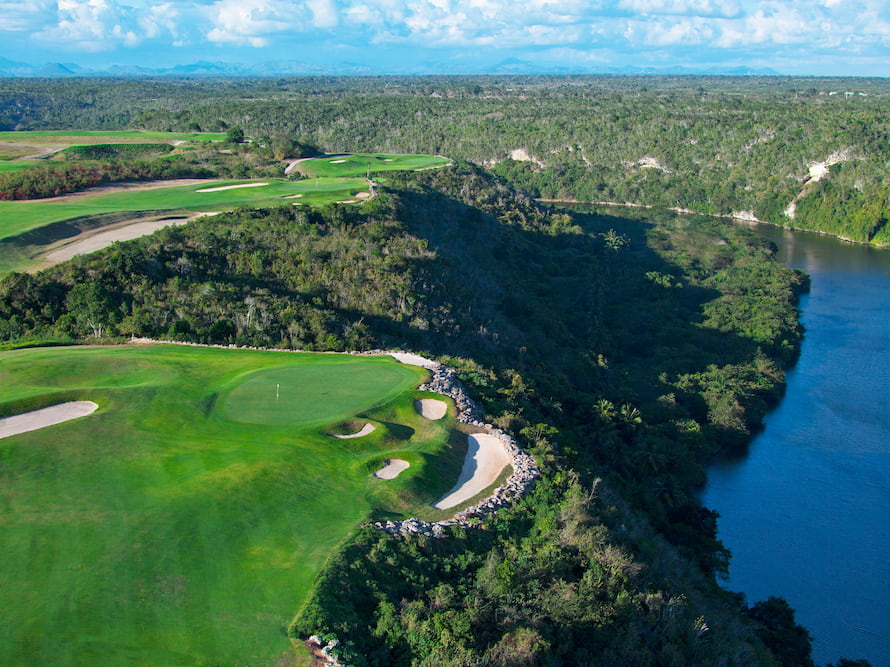 <Das Casa de Campo Resort ist der ultimative Golfurlaub in der Dominikanischen Republik und bietet eine große Auswahl an erstklassigen Hotels und Villenunterkünften. Hier finden ihr 3 spektakuläre Golfplätze sowie eine Vielzahl von Restaurants. Gekennzeichnet durch tadellosen Service, üppige Umgebung und endlose Möglichkeiten, den Tag zu genießen, bietet Casa de Campo endlosen Genuss für Golfer, Familien und Gruppen gleichermaßen. Seit über 50 Jahren genießen Gäste die fabelhafte Landschaft und die unglaubliche natürliche Schönheit, die für eines der beeindruckendsten Luxushotels in der Karibik steht. Teeth of the Dog • 18 Löcher Dieses Meisterwerk von Pete Dye können Sie während Ihres Aufenthalts in Casa de Campo spielen. Ein weltberühmter Platz, dessen Bespielen zweifellos ein Traum ist, und wir versichern euch, dass er euch nicht gleichgültig lassen wird. Teeth of The Dog gehört zu den 100 besten Golfplätzen der Welt. Dye Fore • 27 Löcher Dieser Kurs, der sich durch seine atemberaubende Aussicht auf die dominikanischen Berge, den Fluss Chavón, den Jachthafen und Altos de Chavón auszeichnet, ist eine Herausforderung für Spieler aller Spielstärken. The Links • 18 Löcher Ein britischer Touch in der Karibik. Diese 18 Löcher verteilen sich über das Hinterland und die spektakulären Villen von Casa de Campo. The Links ist ein weiteres großartiges Werk von Pete Dye und wurde 2012 umgebaut. Perfekt zu kombinieren mit dem Golfangebot in Casa de Campo. -