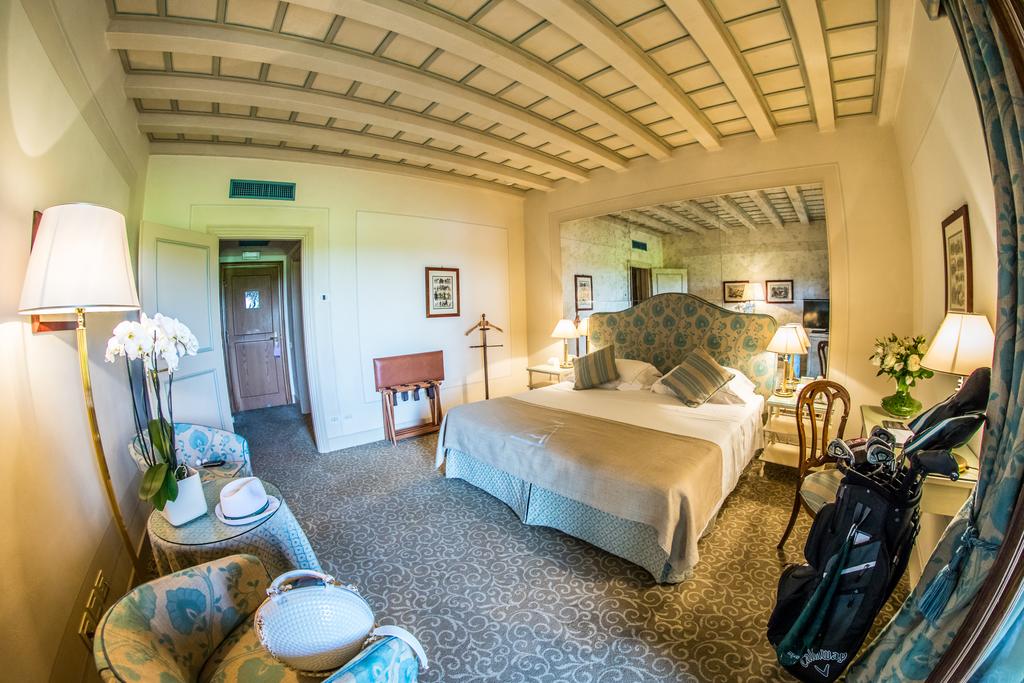 <Nach der Golfrunde lädt der exklusive Spa- & Wellnessbereich zur Regeneration ein – mit Innen- und Außenpools, Saunen, Dampfbädern und hochwertigen Anwendungen. Die stilvollen Zimmer und Suiten verbinden historischen Palazzo-Charakter mit modernem Komfort. Kulinarik & Ambiente: Mehrere Restaurants und Bars sorgen für kulinarischen Genuss auf hohem Niveau – von italienischer Küche bis zu leichten, sportgerechten Menüs. Terrassen mit Blick auf die Golfanlage und die umliegende Landschaft schaffen ein entspanntes, mediterranes Ambiente.