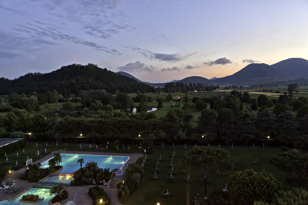 Das Galzignano Resort Terme & Golf – Hotel Sporting ist Teil des weitläufigen Galzignano Resort Terme & Golf im Herzen der Euganeischen Hügel (Venetien) – einer der bedeutendsten Thermen- und Wellnessregionen Europas, unweit von Padua und nur kurze Fahrt von Venedig entfernt. Das Hotel Sporting liegt eingebettet im Park des Resorts und bietet gemütliche Zimmer mit Blick auf Grünflächen, moderne Annehmlichkeiten und ein reichhaltiges Aktiv- und Freizeitprogramm. Gäste haben Zugang zu den Wellness-Bereichen, Restaurants und sportlichen Einrichtungen des Resorts. Vier unterschiedliche gastronomische Konzepte – vom Gourmet-Restaurant bis zur Pool-Bar – laden zu regionalen und mediterranen Spezialitäten ein. Das Resort kombiniert Sport, Wellness, Natur und Genuss in einem Ambiente, das sich ideal für entspannte Urlaubstage, sportliche Aufenthalte oder Gruppenreisen . Der Komplex befindet sich in Venetien (Norditalien), umgeben von den malerischen Euganeischen Hügeln, mit guter Anbindung an kulturelle Städte wie Venedig, Padua, Verona und Vicenza – ideal für Sport- und Wellnessurlaub im Zeichen italienischer Lebensart. Galzignano Terme ist ein Kurort in der Provinz Padua in Norditalien nahe am Meer und bei Venedig mit nicht einmal 5000 Einwohnern. Teilweise liegt das Gemeindegebiet im Naturpark der Euganeischen Hügel, wo mit Montegrotto Terme, Battaglia Terme und Abano Terme drei weitere Kurorte um die Gunst der Besucher buhlen. Durch Obst- und Olivenanbau geprägt ist Galzignano Terme mit seinen verstreuten Ortschaften und drei Hügeln Monte Rua (416 m), des Monte Orsara (362 m) und des Monte Gallo (385 m) ein anheimelndes grünes Gebiet, das dem Auge schmeichelt. Das Kurzentrum (Wellnessbereich der Kurhotels) von Galzignano Terme verwendet 87 °C heiße, bei Civrana im Osten austretende, Brom-Jod-Quellen für Thermalbäder und Fangotherapien. Tennisplätze und ein 9-Loch-Golfplatz, sowie weitere Golfpätze in der Umgebung, Wander- und Radwege bieten Anreize für sportlichen Urlaub in der Euganeischen Thermalregion. Ortsteile von Galzignano Terme, das bis 1797 zur Republik Venedig gehörte, sind: Canova, Cengolina Sottovenda, Civrana (Kurzentrum), Grottarole, Noiera, Regazzoni, Valsanzibio Hier finden sich die Villen der reichen Venezianer auf den Gipfeln der Hügel. Die Villa Barbango Pizzone Ardemani aus dem 17. Jh. mit ihren Wasserspielen und ihrem barocken Garten ist ein attraktives Ausflugsziel. Golfspieler finden rund um die Villengärten einen 27-Loch-Golfplatz. Hotel Sporting: Unter den drei Hotels mit 4 Sternen, welche zusammen das Resort von Galzignano bilden, ist das Hotel Sporting dasjenige, welches von internationalen Gästen am meisten besucht wird. Inmitten der üppigen grünen Vegetation bietet es Komplettservice, ein Restaurant, eine Lounge Bar, eine weitläufige Halle mit Piano und großer Ausstellungsfläche für Kunstausstellungen. Alle 110 Hotelzimmer sind raffiniert eingerichtet und verfügen über eine Terrasse oder einen Balkon, welche dem Gast eine spektakuläre Aussicht ermöglichen.