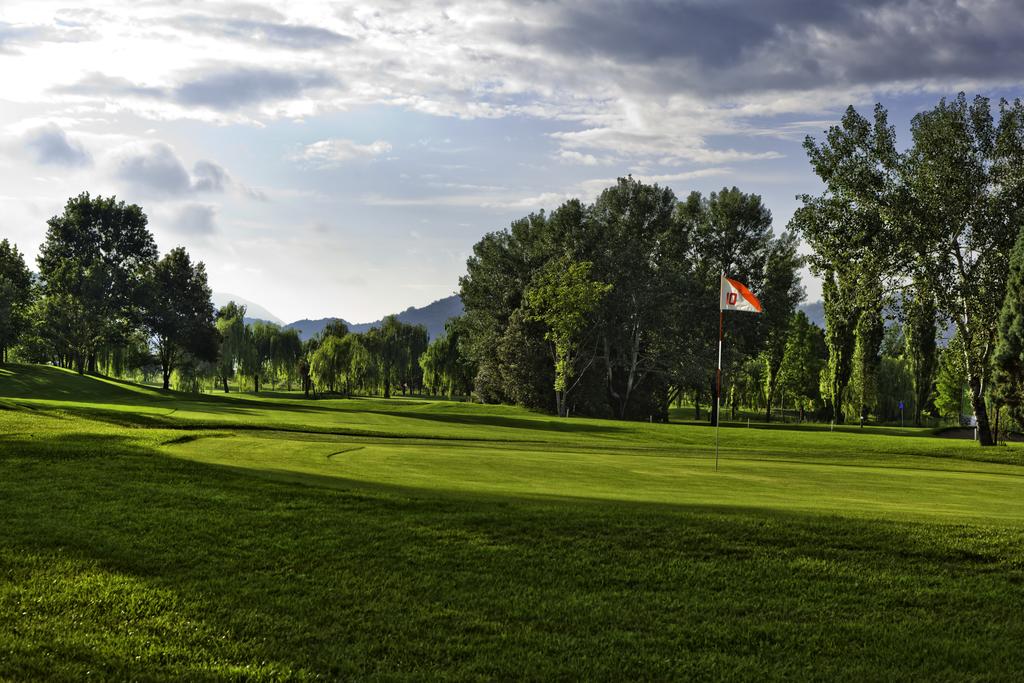 <Im Zentrum des Resorts liegt der gepflegte 9-Loch-Golfplatz „Golf Terme di Galzignano“, eingebettet in einen 350.000 m² großen Naturpark zwischen sanften Hügeln und Thermalzonen. Der Platz zeichnet sich durch abwechslungsreiche Fairways, natürliche Wasserfeatures und eine harmonische Integration in die Landschaft aus. Zur Anlage gehören Driving Range, Putting- und Pitching-Greens sowie eine Golf Academy für Training und Technikverbesserung. Golf Club Padova (Valsanzibio): Einer der ältesten und größten Plätze der Region mit 27 Löchern in drei 9-Hole-Courses (Red, Yellow, Blue). gelegen im Regionalpark der Euganeischen Hügel – landschaftlich sehr reizvoll und technisch abwechslungsreich. Golf Club Montecchia: Ca. 6 – 9 km von Abano/Montegrotto entfernt. 27-Loch Golfplatz in malerischer Landschaft, auch bekannt für Gruppenangebote und Academy-Training. Golf Club Frassanelle: Rund 8 – 10 km entfernt. 18-Loch Parcours eingebettet in einen historischen Park mit Seen und natürlicher Vegetation, ideal für entspannte Runden. Weitere Golfmöglichkeiten in der Region: In der Euganeischen Hügel-Region gibt es insgesamt viele Optionen, oft mit Rabatt-Greenfees über Hotels in Abano/Montegrotto. Dazu gehören auch kleinere Executive- bzw. Kurzplätze wie AbanoGolf (3 Loch) oder Colli Euganei (4 Loch) sowie weitere Driving-Range-Anlagen. -