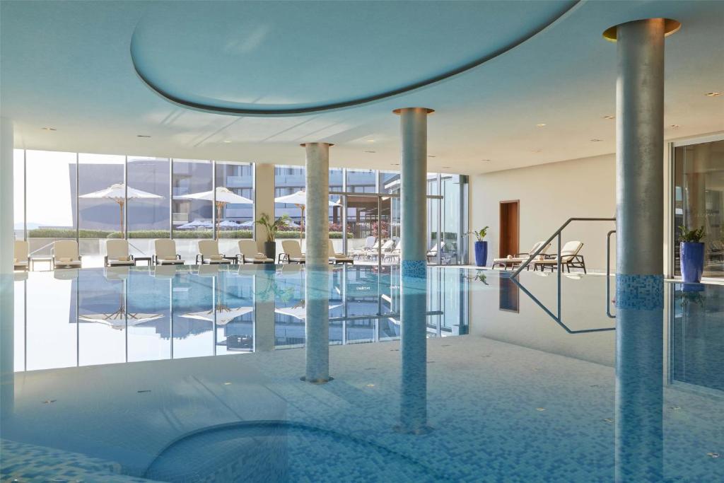 <Das großzügige Kempinski Spa Adriatic ist eine Oase der Entspannung: Innen- und Außenpool mit Meerblick, Sauna, Dampfbad und Relaxzonen, Hochwertige Massagen und Beauty-Behandlungen, Individuelle Wellness- und Regenerationsprogramme. -