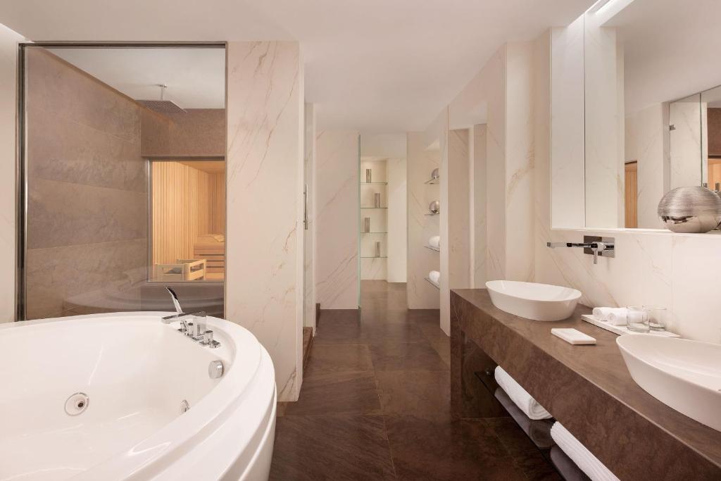 <Das Heavenly Spa by Westin™ ist ein Ort der Ruhe und Regeneration: Innenpool, Sauna, Dampfbad und Relaxbereiche, Hochwertige Massagen und Beauty-Behandlungen, Ganzheitliche Wellness- und Entspannungsprogramme, Ideal zur Regeneration nach Golf und sportlichen Aktivitäten. -