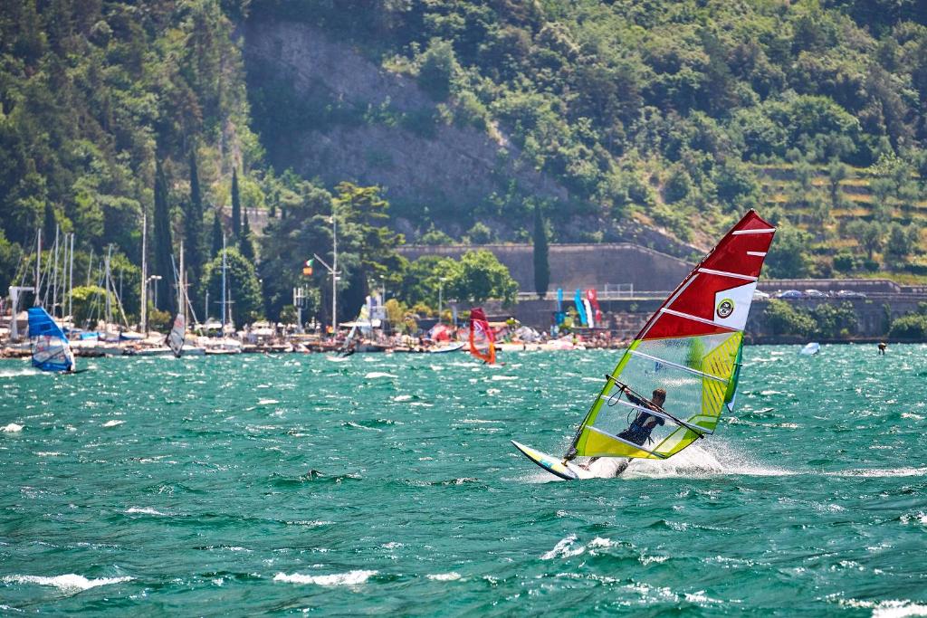 <Surfspaß am Gardasee – Surfcenter Lido Blu in Torbole: Dank der legendären Winde Ora und Peler zählt die Bucht rund um das Surfcenter Lido Blu in Torbole zu den besten Surfspots am Gardasee. Direkt am Wasser gelegen, ist sie der ideale Ausgangspunkt für Windsurfing auf höchstem Niveau – mit konstanten Windbedingungen und kurzen Wegen vom Hotel aufs Board. Die professionellen Surflehrer des Surfcenters bieten optimale Schulungsbedingungen für alle Könnerstufen und Altersklassen. Ob Kinder, Erwachsene, Einsteiger oder Fortgeschrittene – die Kurse werden individuell angepasst und ermöglichen schnelle Lernerfolge. Unterstützt wird der Unterricht durch moderne, videotechnische Lehrmethoden, die Technik und Fortschritte anschaulich vermitteln. Das Surfcenter Lido Blu stellt modernstes Surfmaterial inklusive kompletter Ausrüstung zur Verfügung. Alternativ können Surfbretter und Zubehör ausgeliehen oder eigenes Surfmaterial sicher vor Ort gelagert werden – ganz ohne täglichen Transportaufwand. Zum Kursangebot gehören Gruppen- und Einzelunterricht, Privatstunden, Kinderkurse, Funboard- und Freestyle-Specials sowie Trainings für fortgeschrittene Surfer, die ihre Technik und neuesten Moves perfektionieren möchten. So wird jeder Surfkurs exakt auf die persönlichen Wünsche und Fähigkeiten abgestimmt. Das Surfcenter Lido Blu Torbole zählt zu den ältesten und renommiertesten Surfschulen am Gardasee. Gegründet in der Zeit des Surf-Pioniers Sigi Hofmann, prägt seit 1990 Petr als Herz und Seele des Centers dessen Philosophie: höchste Professionalität, Leidenschaft für den Sport und der Einsatz innovativer Materialien und Lehrmethoden. Erleben Sie die faszinierende Welt des Windsurfens am Gardasee – mit Top-Service, kompakten Angeboten und einem Team, das Wind und Wasser lebt. Das Surfcenter Lido Blu freut sich darauf, Sie willkommen zu heißen. -