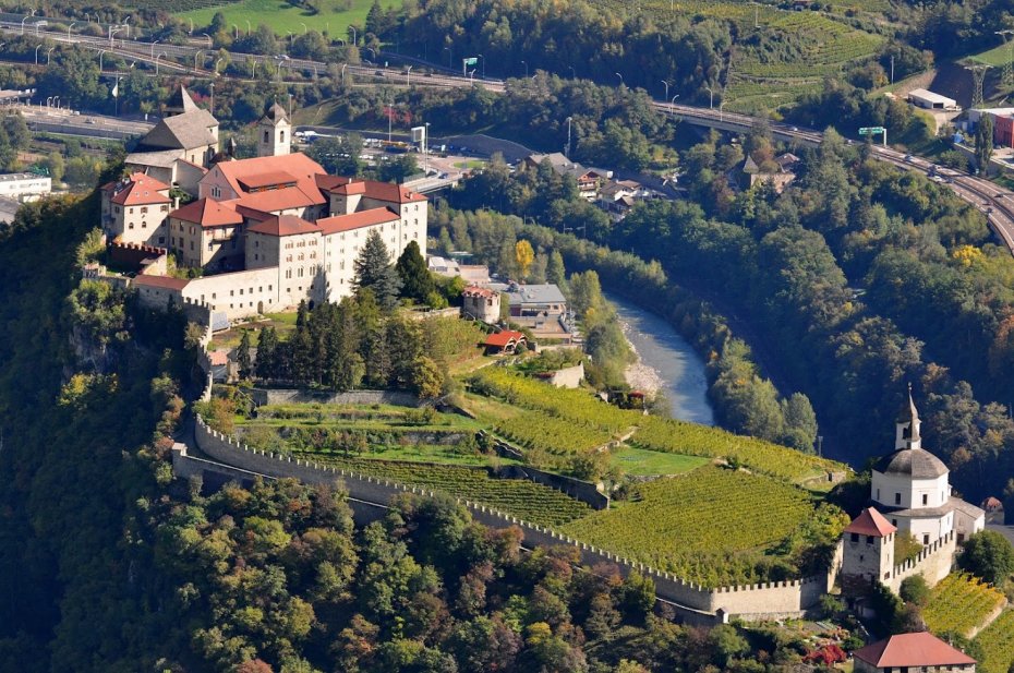 <Heute fahren Sie auf ruhigen Nebenstraßen und Radwegen zur Mündung von Etsch und Eisack. Dabei passieren Sie beschauliche Städtchen wie Nals und Andrian und in Lana können sie das Apfelmuseum besuchen. -- HÖHENUNTERSCHIED (M) + 125 - 165 -