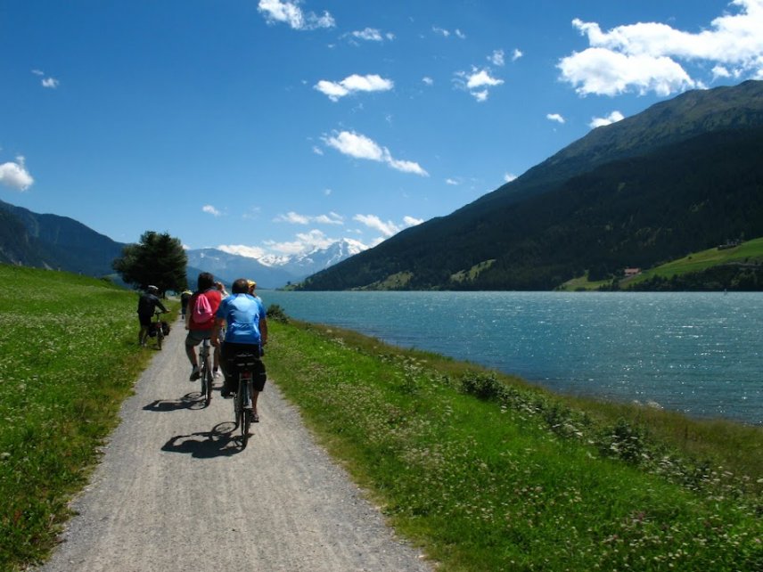 <Ein Transfer bringt Sie hinauf auf den Reschen, auf 1500 m, wo Sie Ihre Radtour beginnen. Der herrliche Radweg führt Sie am hübsch gelegenen Reschensee mit seinem herausragenden Kirchturm und am Kloster Marienberg vorbei über die Örtchen Schleis, Glurns (der kleinsten ummauerten Stadt Italiens) und Laas (berühmt für seinen Marmor) bis nach Schlanders wo Sie übernachten. - HÖHENUNTERSCHIED (Meter) + 180 - 975 -